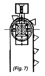Elevator (Fig. 7) : The elevator bucket lifts spent abrasives from the elevator boot to the head for discharge into abrasive hopper. Elevators are supplied in various sizes, based on the volume of the abrasives and contaminants being handled by the system. The elevator belt should be kept tight and should be in the center.